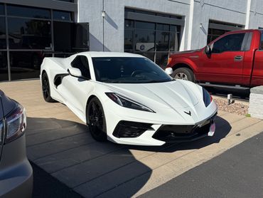 A ceramic coating covers your vehicles paint and acts like a shield against everyday wear like bug residue, bird droppings and UV damage. Since it's ceramic-based, the coating will cause the water to bead up and roll off so it allows for easier cleaning and maintenance.